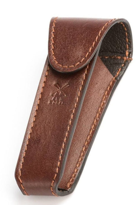Étui de voyage Muhle pour rasoir de sûreté en cuir brun